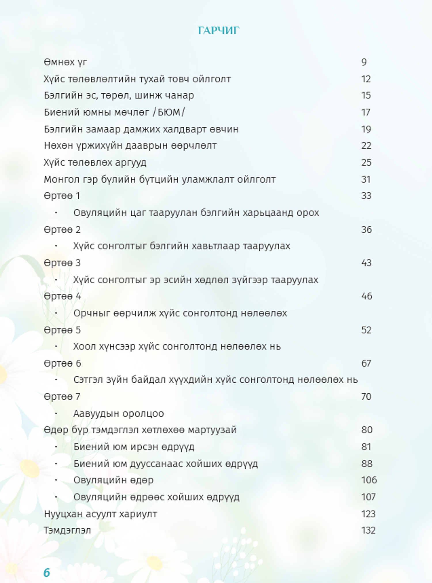 Энэхүү номонд Хүүтэй болох боломжыг нэмэгдүүлэх 5-6 арга оруулсан бөгөөд, арга бүрийг биелүүлхэд хялбар, ойлгомжтой бичсэн. Мөн өдөр тутамын хийх зүйлс, овуляци тогтоох арга, бусад жирэмслэх, үр тогтохтой холбоотой зүйлсийг оруулсан хөтөч Ном юм.